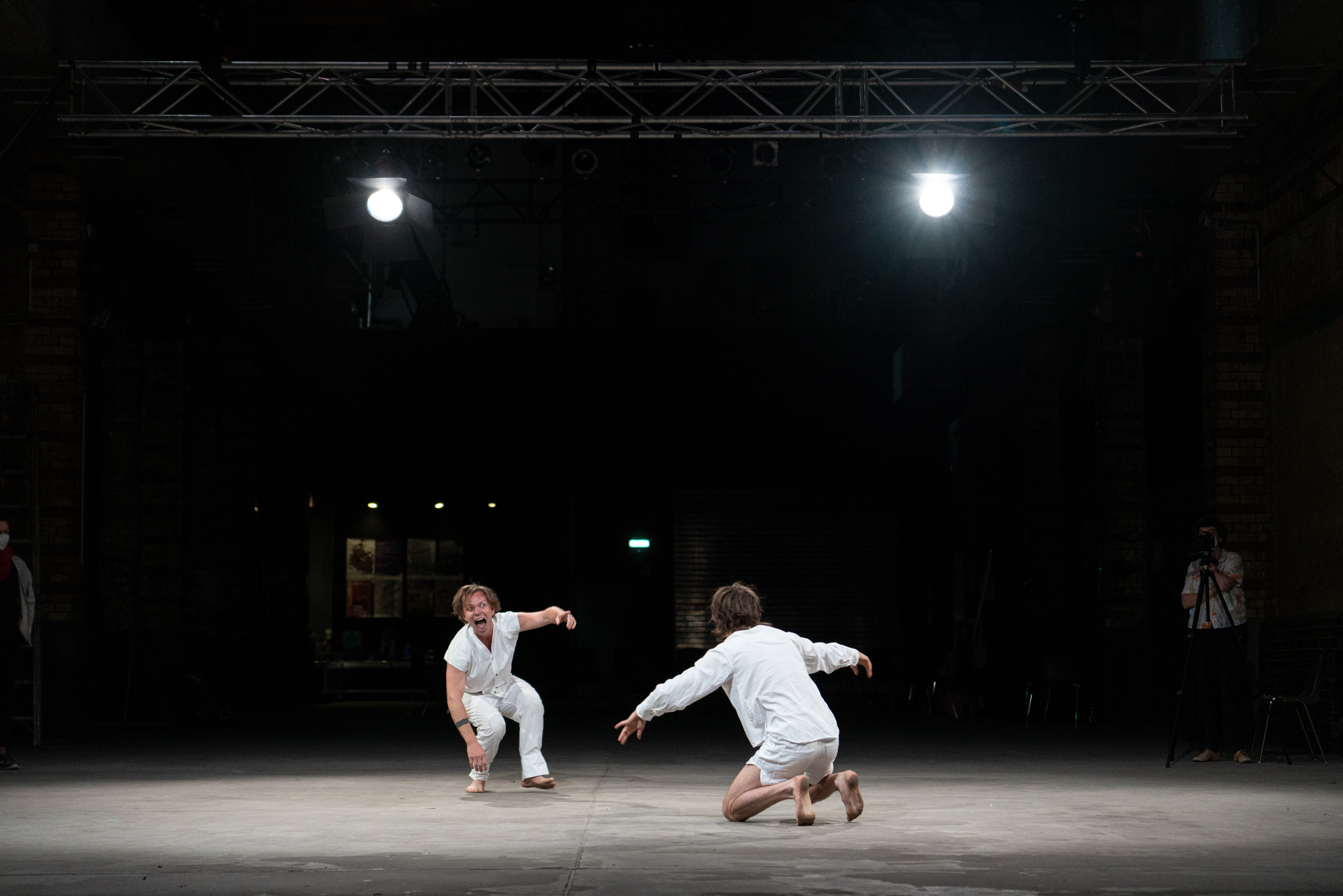 A collective work, a march of fools, lead by Hermann Heisig, rooted in COVID state of the arts, roaming and nonsensical sense-making, this piece travelled from the Fortuna off-space in Berlin to the Residenz of the Schauspiel Leipzig. From the industrial periphery to the cultural centre.