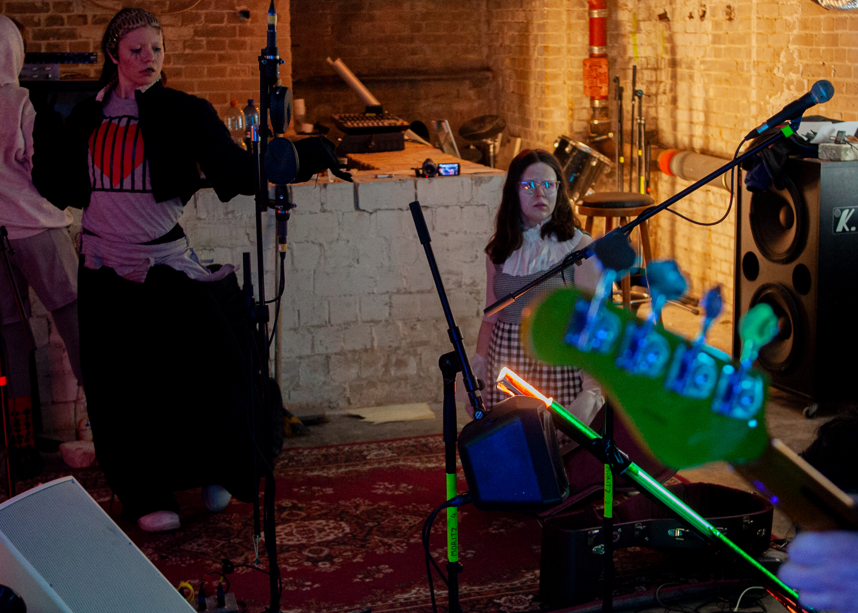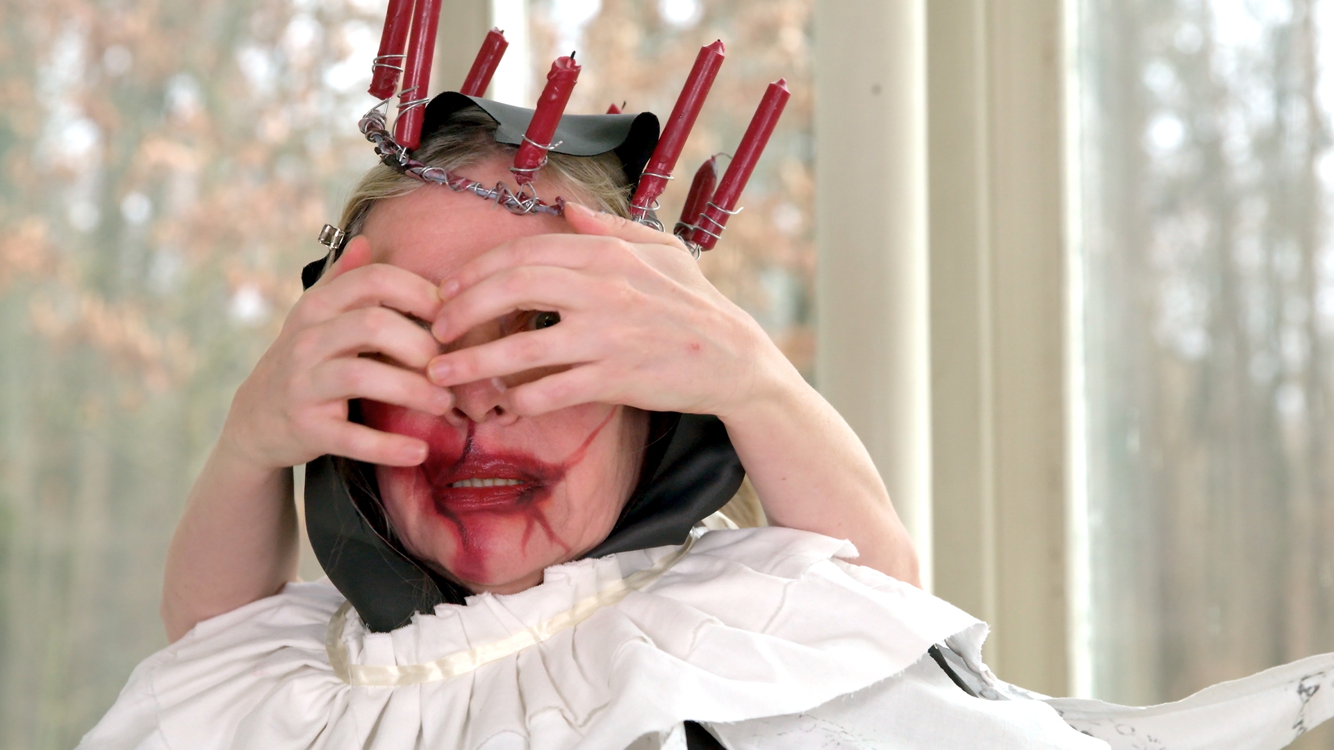 „It consists of videos and live performances. The music alternates between Renaissance music and metal. The piece plays with the moment shortly before and after the fall of the guillotine. The musical poses the question: How can we change the state? It shows the power that controls people.“ (CB)